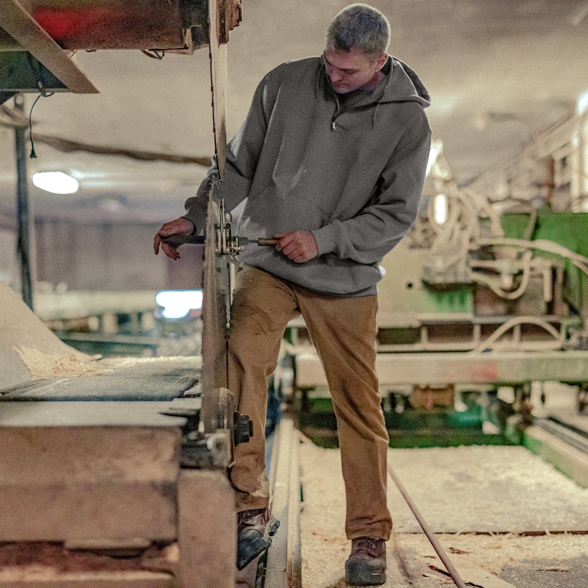Rain Defender durable water-repellent technology has your back all day, every day in this rugged mock sweatshirt that stands up to weather and tough jobs.