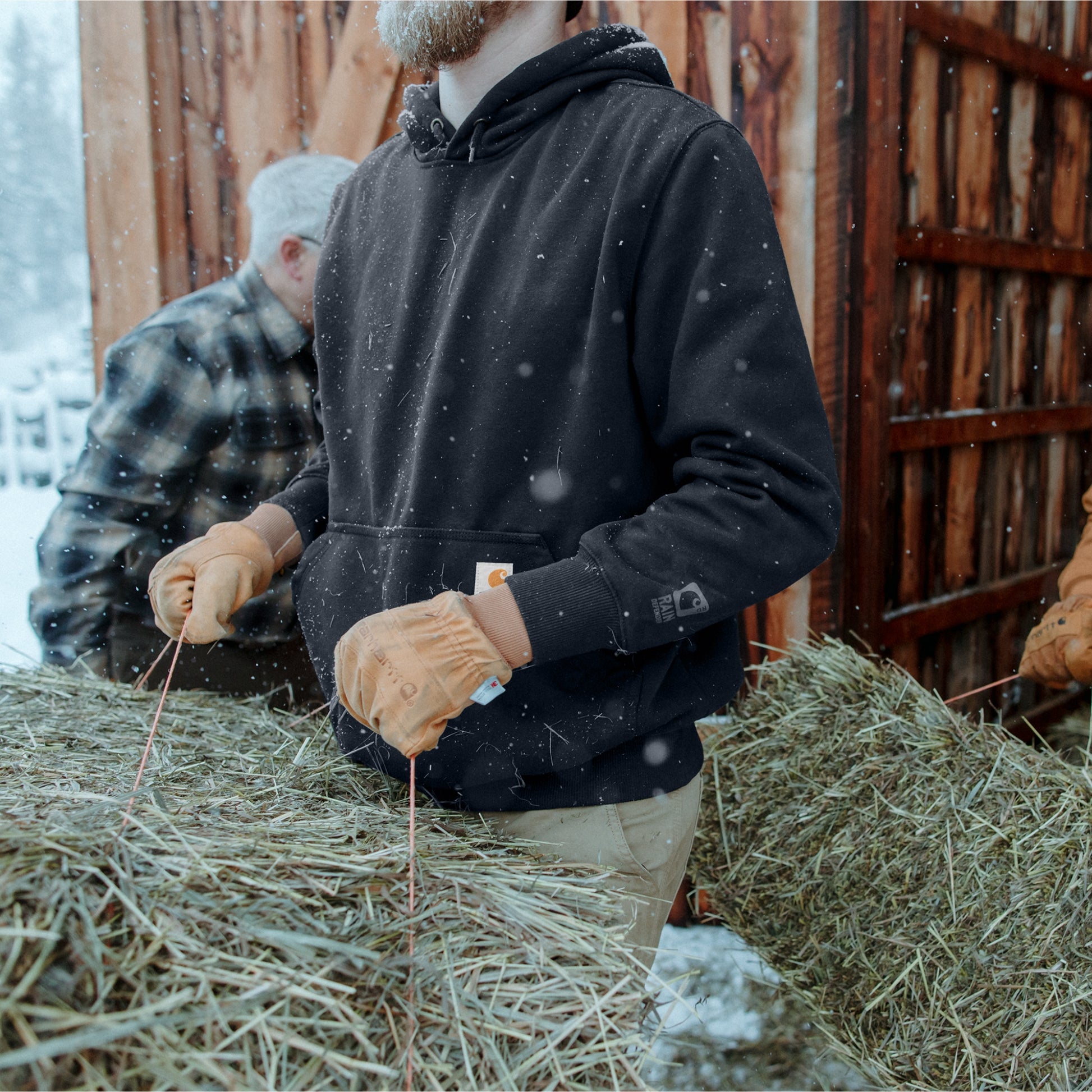 This heavy-duty hoodie stands up to outdoor work in a substantial, water-repellent cotton blend.